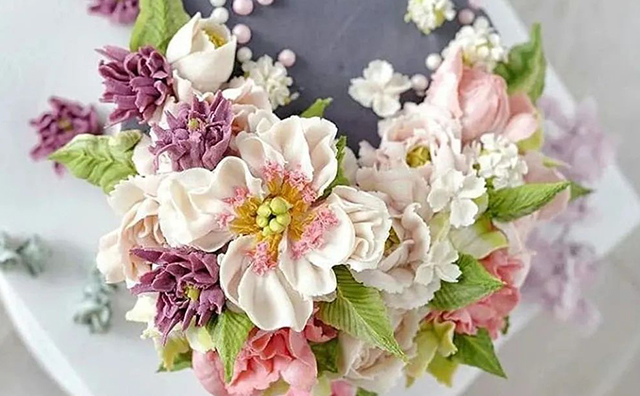 ·韓花蛋糕的組裝、主花和配花的搭配、細節(jié)的組裝技巧